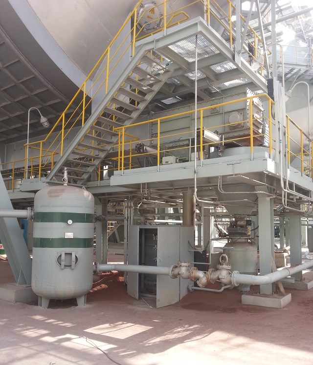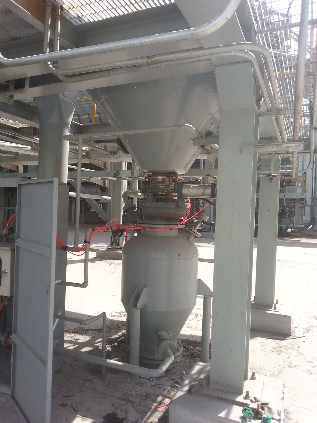 項(xiàng)目簡(jiǎn)介:轉(zhuǎn)爐干法除塵出灰口下方安裝氣力輸送倉(cāng)泵,采用氮?dú)鉃檩斔蜌庠?,將除塵灰輸送至集中灰倉(cāng)集中處理。由于濕度較高(450度以上),且輸送物料為氧化亞鐵有自燃傾向,設(shè)備選型(倉(cāng)泵、閥門及儀表等)全部選擇高濕型。